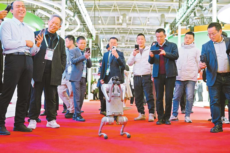 11月26日,市民在第二届中国国际供应链促进博览会上观看机器狗表演。当日,由中国贸促会主办的第二届中国国际供应链促进博览会在北京开幕,主题是“链接世界,共创未来”。 新华社记者 张晨霖 摄