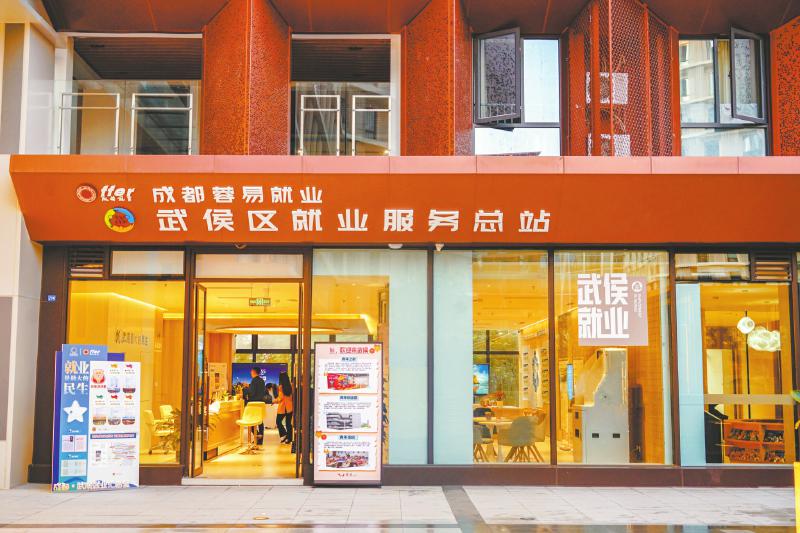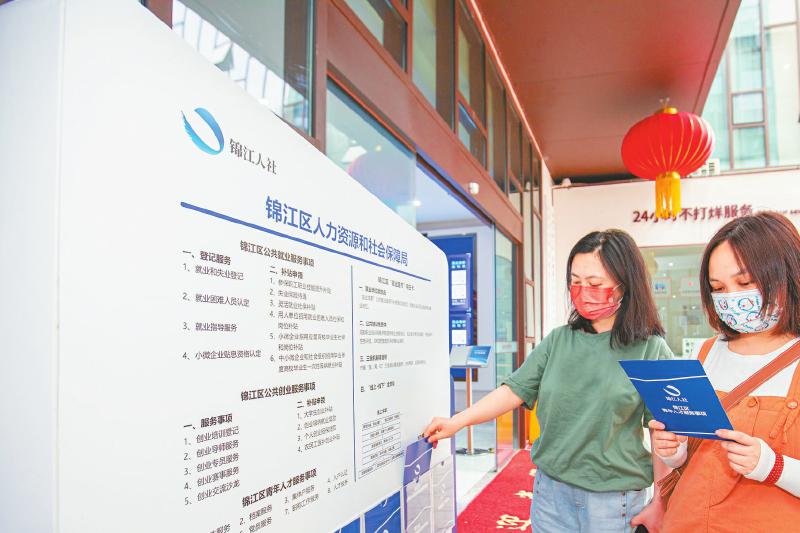 在成都市锦江区三圣街道喜树路社区“锦江就业超市”示范店,社区居民现场了解就业政策。