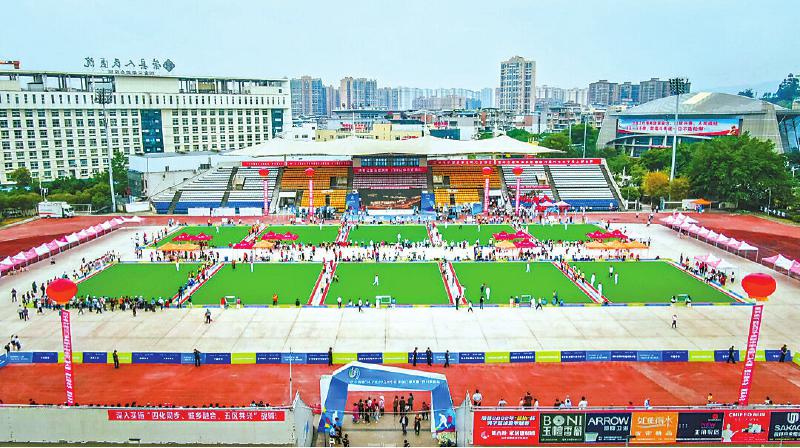 四川各地群众积极参与全民健身运动,图为四川业余足球比赛中。