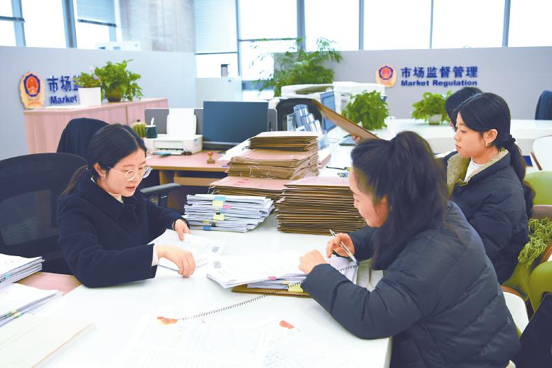 泸州市市场监督管理局窗口工作人员为企业解答问题。