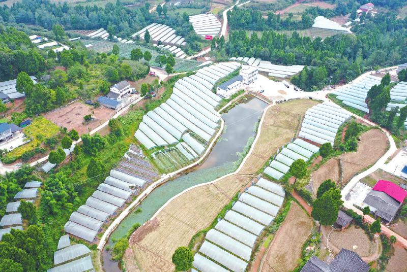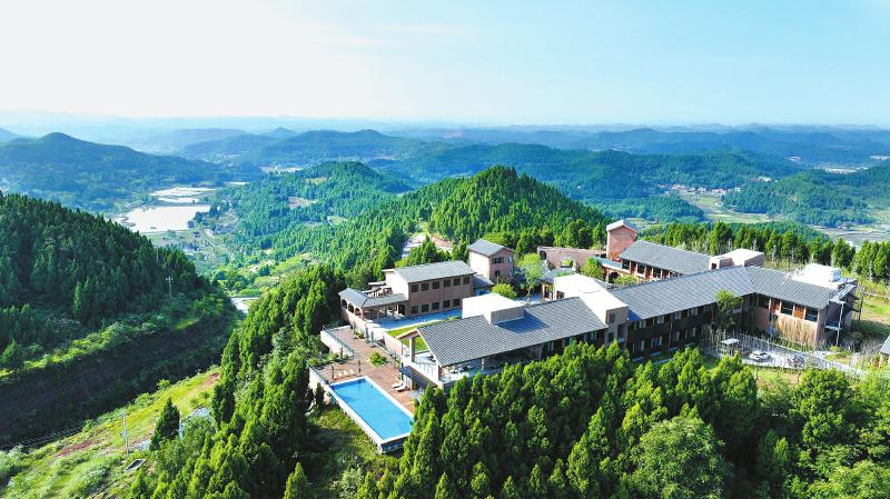 2023年,遂宁市船山区河沙镇凤凰村两宗共计约15.6亩土地入市,入市后建设民宿、森林康养中心项目,进一步丰富乡村的文旅业态。图为该项目航拍。 苏杰 摄