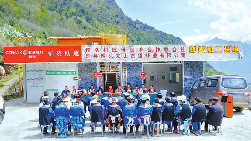 浙商银行成都分行捐资助建增头村蜂蜜加工基地。
