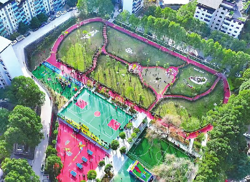 俯瞰万源市古东关街道101小区“口袋公园”。