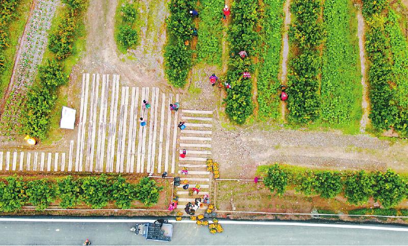 近日,富顺县骑龙镇大田村柑橘产业园,骑龙镇“强村专岗”人员钱风勇带领村民采收金秋砂糖橘。 富顺县委组织部供图