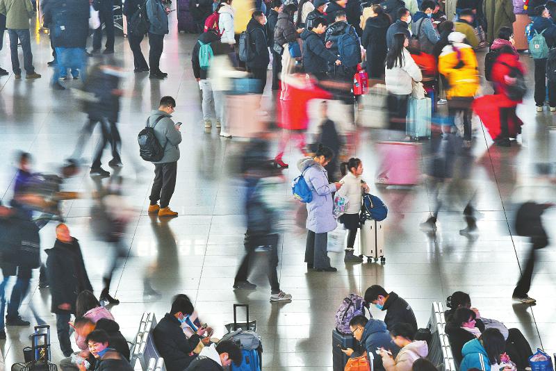 1月14日,成都东站候车大厅人流如织。 四川日报全媒体记者 华小峰 摄