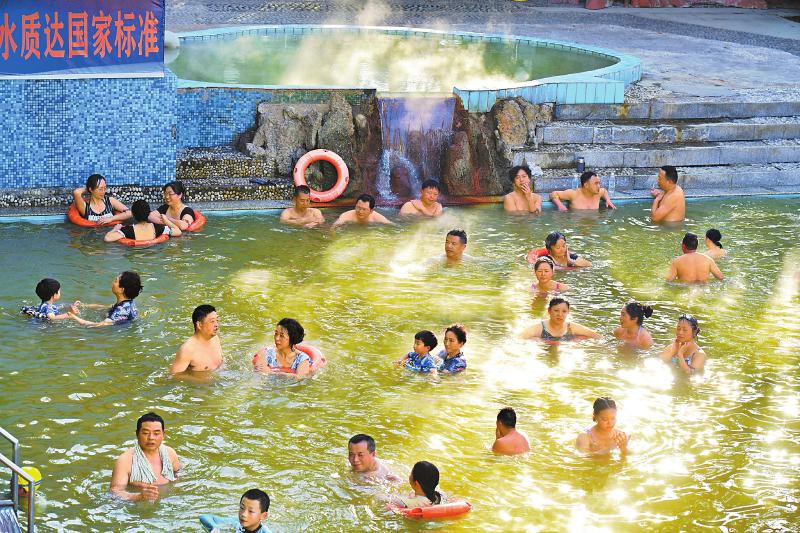 1月12日,游客在达州市开江县的飞云温泉泡汤。当地围绕“冰雪+温泉”主题推出多项文旅优惠活动,让游客玩得好,留下来。