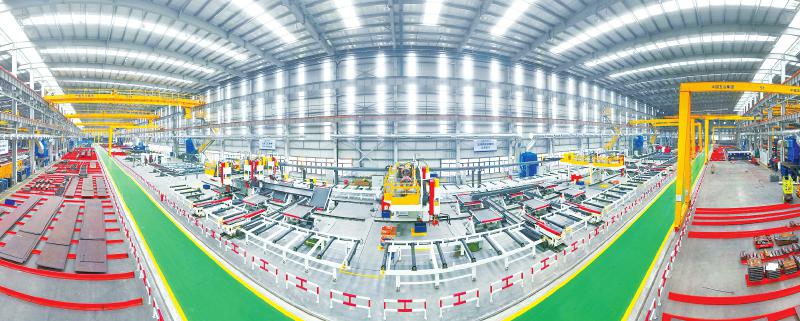 位于宜宾三江新区东部产业园能源港的智锂物联生产基地内,工人在组装重卡换电站设备。 罗顺 摄