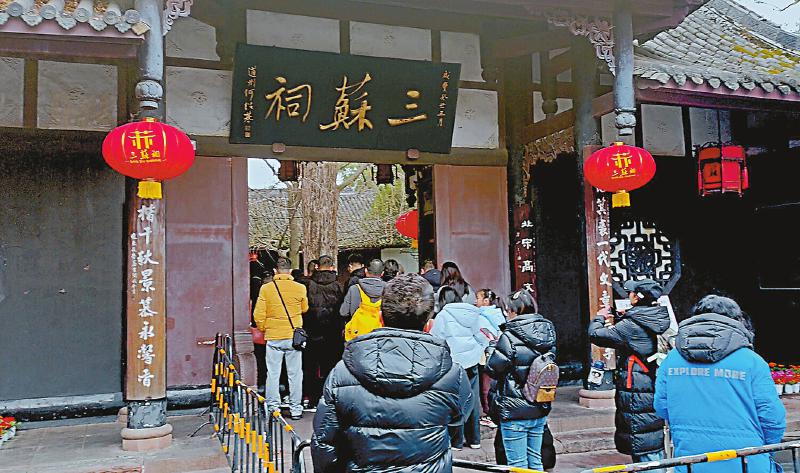 游客进入三苏祠游览。 眉山观察 方旭 摄