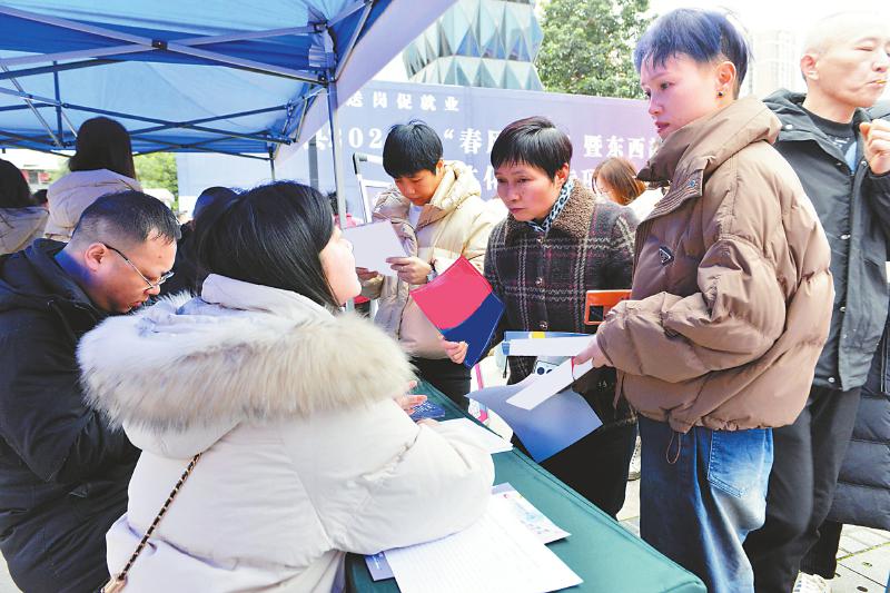 2月12日,南充市南部县举行2025年“春风行动”暨东西部劳务协作阆苍南一体化发展大型招聘会,企业代表和求职者正在交流。 张枥 摄(C视觉)