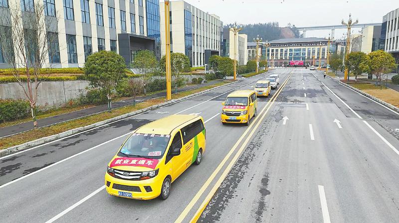 2月11日,一辆辆车头贴着“就业直通车”字样的小黄车,载着当地有就业意愿的400余名农民工,驶进位于巴中市恩阳区的巴中临港产业园。恩阳区就业服务管理局供图