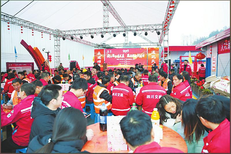 2月12日,在达州大竹至重庆垫江高速公路(四川境)TJ1标段项目(匠心产业工人园),达州市人社局和达州市农民工服务中心联合举办新春慰问活动暨开工宴。 达州市农民工服务中心供图
