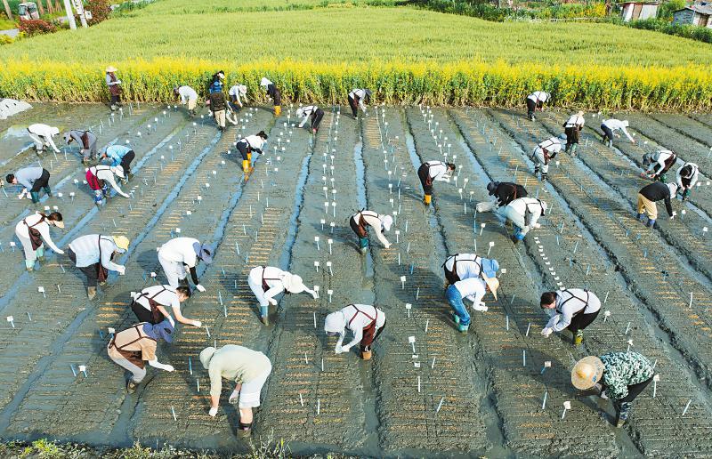 4月19日,位于成都市温江区的四川农业大学科研基地内,该校水稻研究所导师带领研究生们为新一季杂交水稻新品种选育播种科研材料,当日播种3000余份(种)。 陈先林 摄(C视觉)