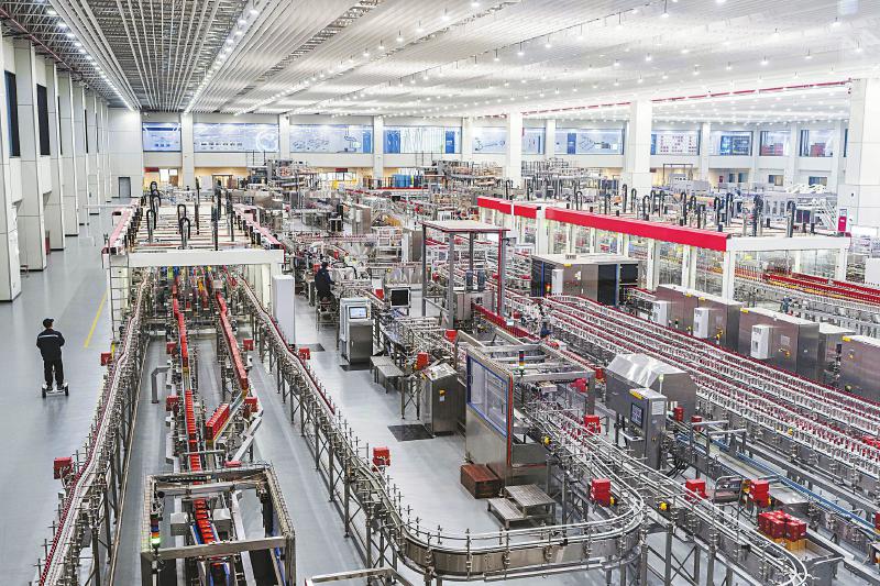 4月11日,工人骑着平衡车在泸州老窖智能包装中心的车间内巡检。车间内的5条生产线已实现全流程自动化,包装速度每小时可达1.5万瓶,生产效率较传统模式提升2倍以上。