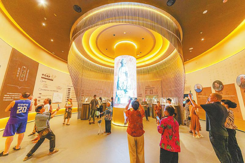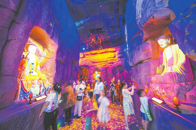 4月20日,安岳石窟数字展示中心建成试营运第5天,游客累计近2万人次。这座极具科技感的建筑,运用AR、VR、全息投影、3D打印等技术,提供沉浸式文化体验,让沉睡千年的石窟艺术焕发新的生机。 吴坤忠 摄(C视觉)