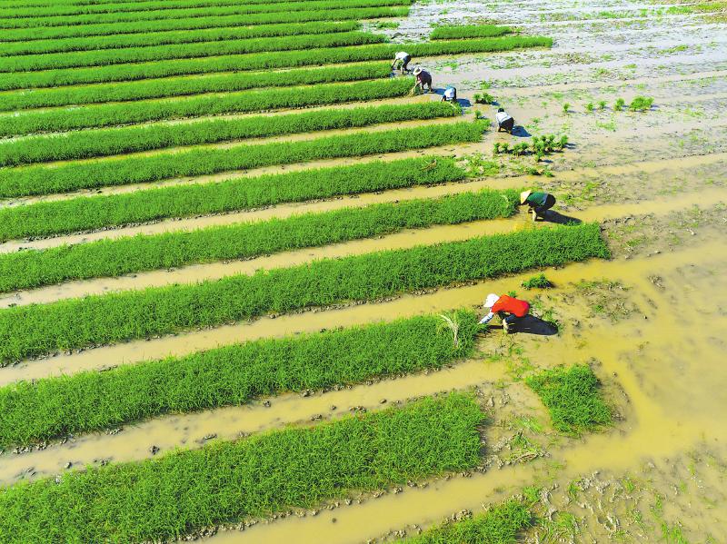4月20日,广安岳池县石垭镇雷家堡村,岳池县枫林农业专业合作社的村民正在插秧。 杨春艳 摄(C视觉)