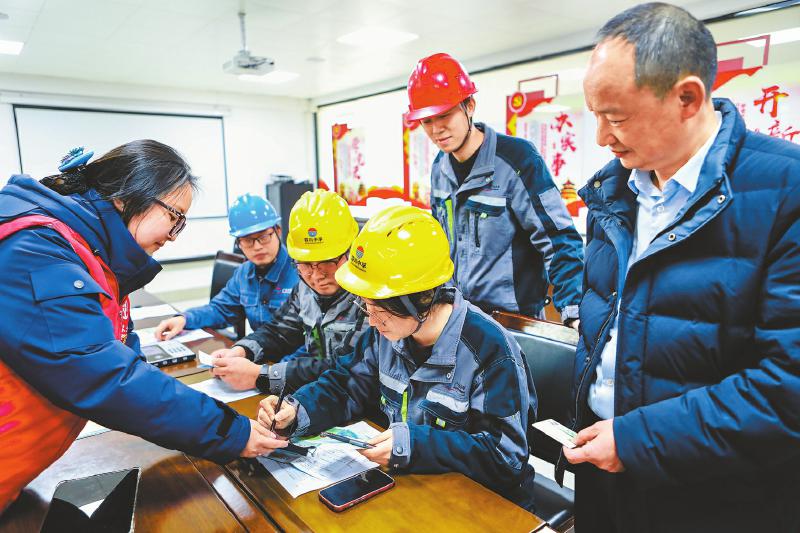 农行广元分行党员突击队进厂服务,为一线工人集中开立养老金账户、办理社保医保码及银行卡。