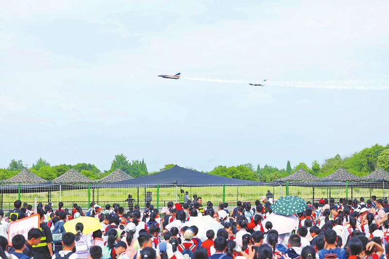 4月28日,成都高新区银都紫藤初中东区学校的700余名学生,走进青白江区弥牟镇朱家湾低空经济研学基地,开启了一场沉浸式低空科技探索之旅。通过理论课堂、实践操作和零距离接触直升机等环节,学生初步了解航空知识,领略低空经济的魅力。白桂斌 摄(C视觉)