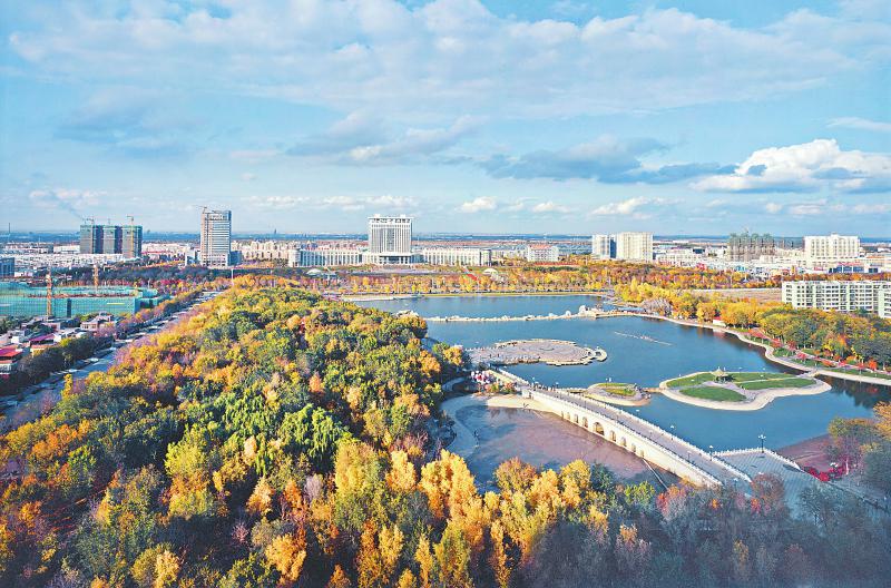新疆石河子市世纪公园鸟瞰(资料照片)。 新华社发