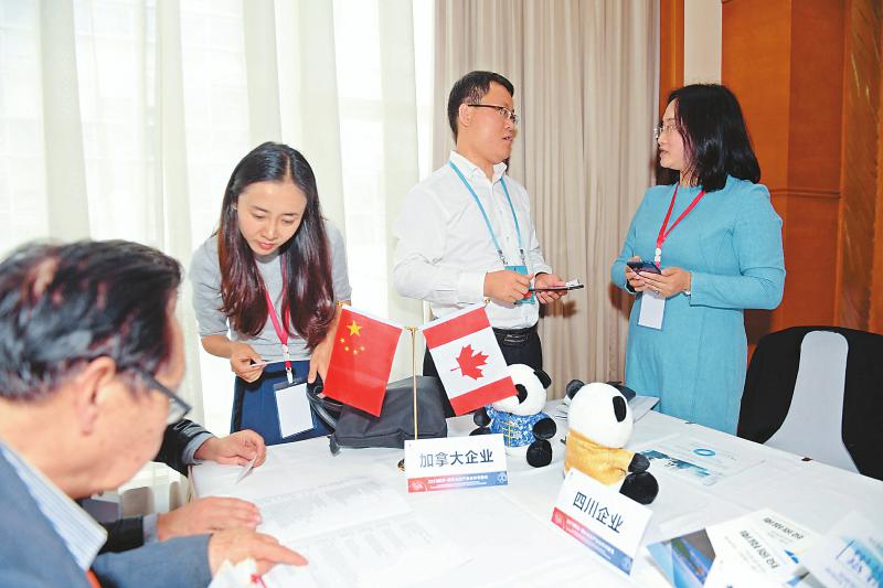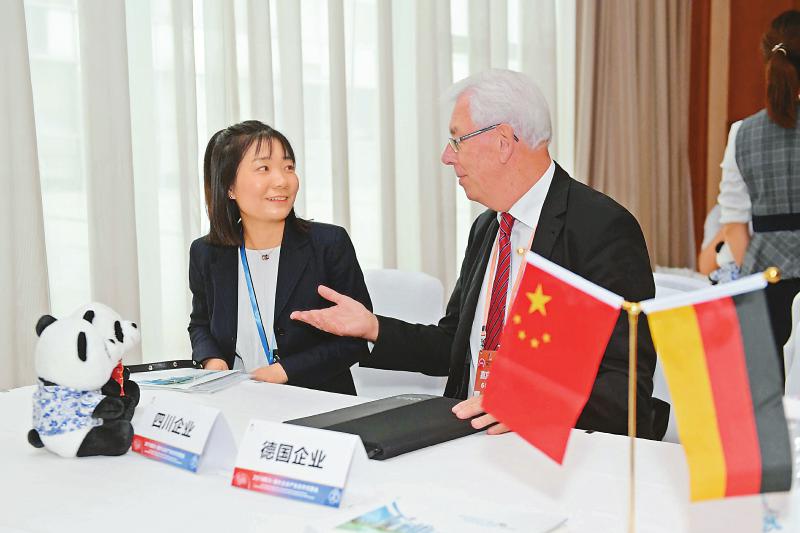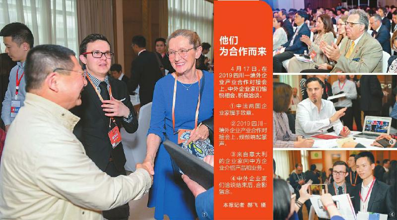 4月17日,2019中外知名企业四川行投资推介会四川企业家与外国企业代表洽谈。 本报记者 郝飞 摄