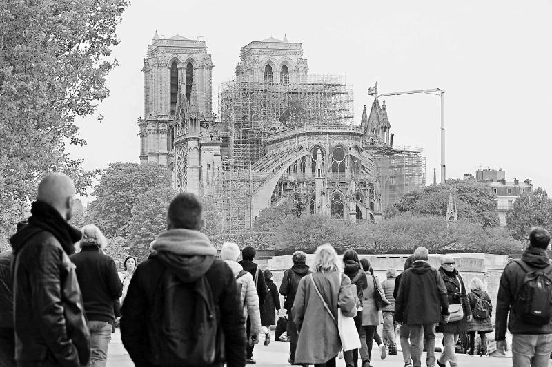 4月16日,在法国巴黎,人们聚集在“受伤”的巴黎圣母院附近。16日一早不断有民众来到巴黎圣母院,看望这位受伤的“老朋友”。有人带来了鲜花,放在塞纳河堤岸,更多的人站在河边默默注视不远处的圣母院。新华社记者 高静 摄