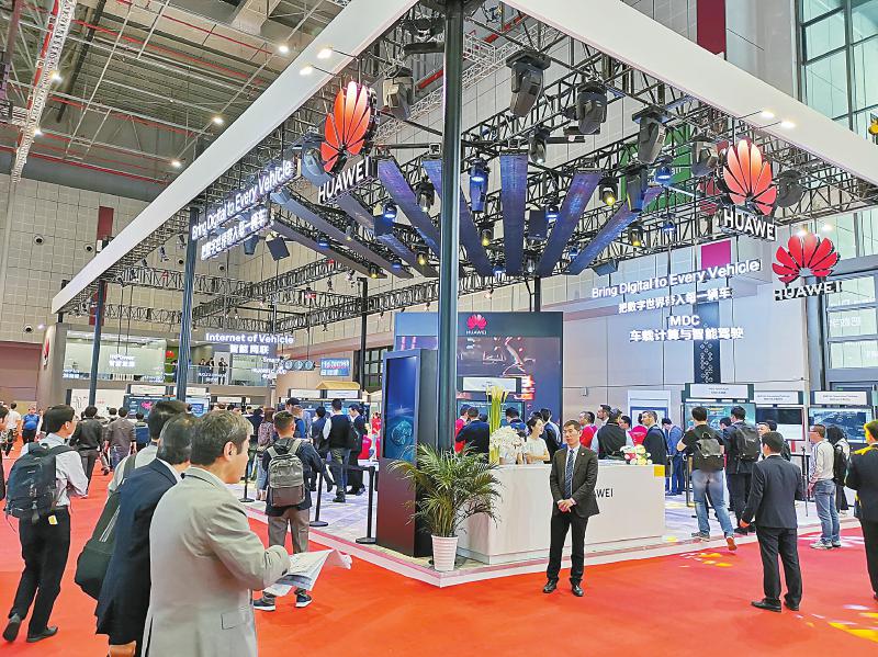 5G技术展示成为了2019第十八届上海国际车展的热点。 本报记者 赵张冬 图