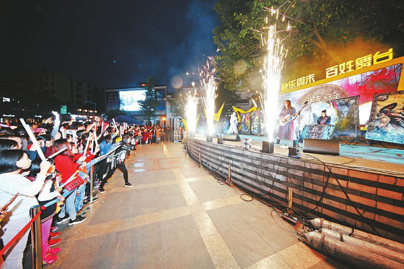 4月12日,周五晚,成都新都区黄桷树广场上,“快乐周末·百姓舞台”如期相约。10个节目依次登台表演进行比赛。
