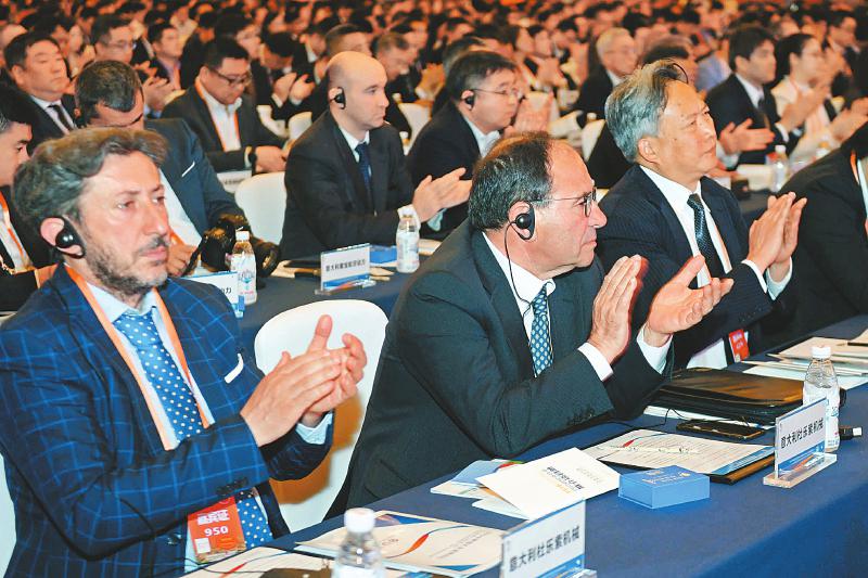 4月17日,参加2019中外知名企业四川行活动的企业家为会上的精彩内容鼓掌。 本报记者郝飞摄
