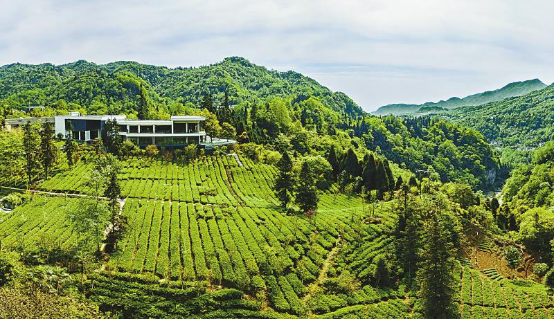 4月19日,“第四届中国茶乡峨眉山国际茶文化博览交易会”在乐山峨眉山市启幕。图为峨眉山市现代农业产业园雪芽黑水有机茶基地茶旅融合点。梧桐文/图
