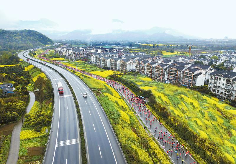 二○一八成都双遗马拉松赛道连接了都江堰、青城山世界两大遗产和四川大熊猫栖息地,以及都江堰的多条绿道。何勃摄