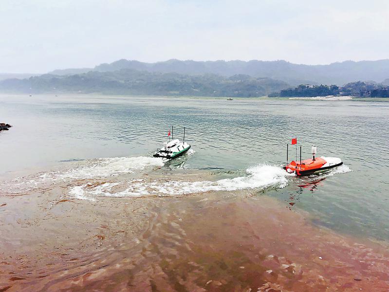 精准监测 近日,两艘无人船驶向长江中,精准监测水质。 本报记者李向雨摄