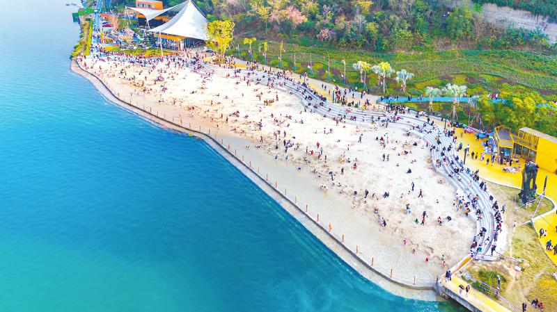 东区银江沙滩成市民热门打卡地。