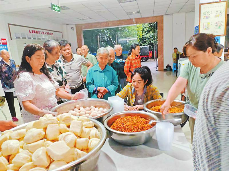 德阳绵竹市九龙镇地灾集中安置点,群众吃上了热饭菜。 九龙镇政府供图