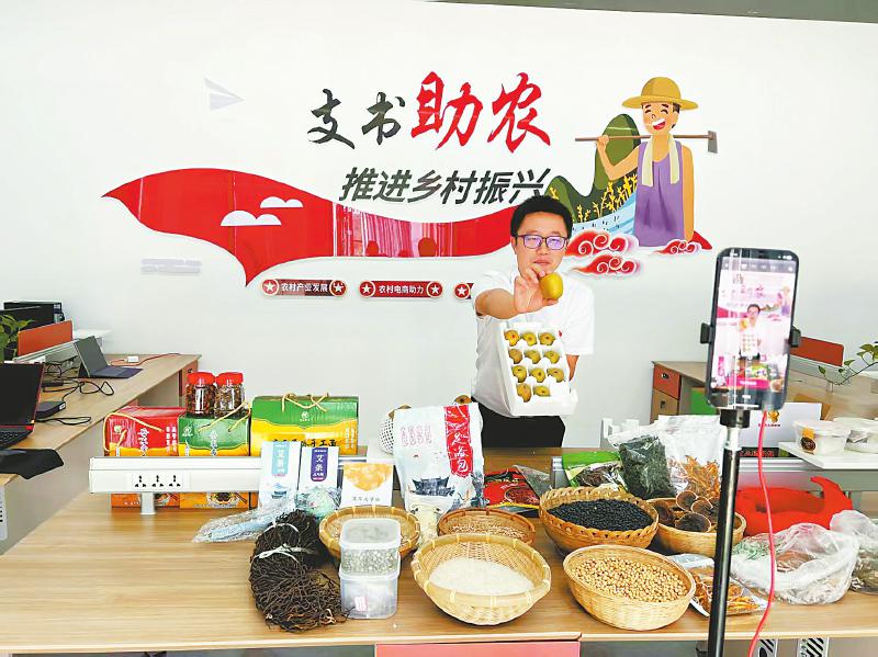 广元市苍溪县河地镇兴华村党支部书记谢艾军在直播带货,帮助地方销售农副产品。