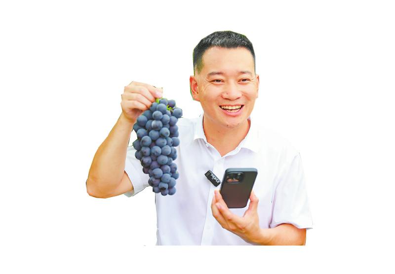 广安华蓥市阳和镇祝家坝村党总支书记邓宏波,在村头的葡萄园直播带货。 邱海鹰 摄(C视觉)