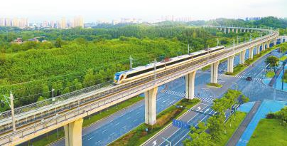 轨道交通资阳线列车穿过资阳临空经济区。资阳观察 黄林龙 摄