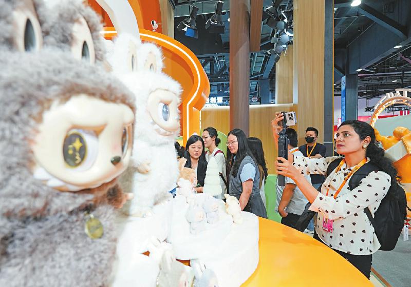 9月10日,一名记者在服贸会主题展POP MART展台拍摄。 新华社记者 张晨霖 摄