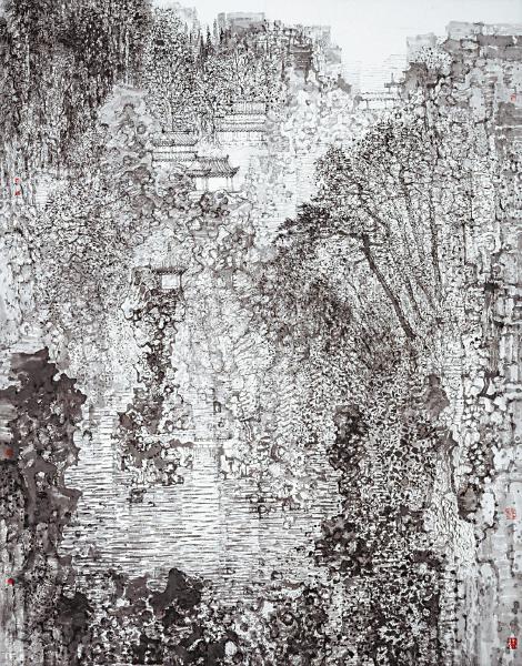 素园探幽(中国画),尺寸:240cm×190cm。曾诚作