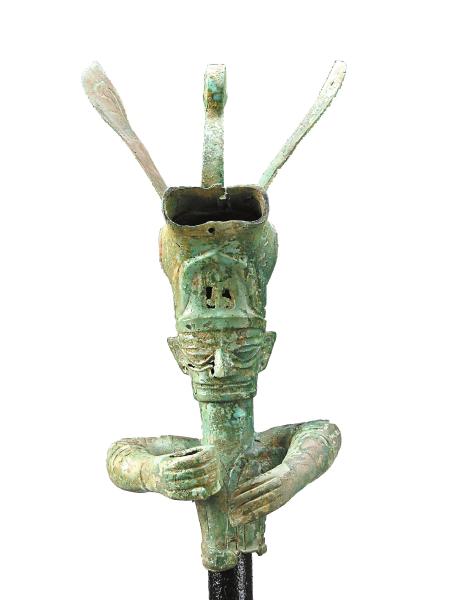 铜兽首冠人像