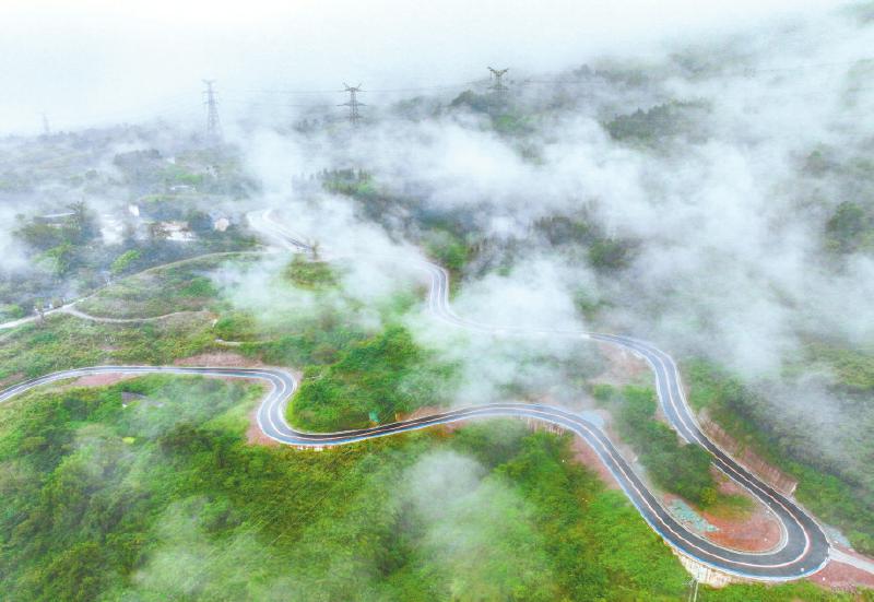 10月8日,航拍晨雾中的芦山县灵鹫山旅游公路,该公路在国庆假期贯通。