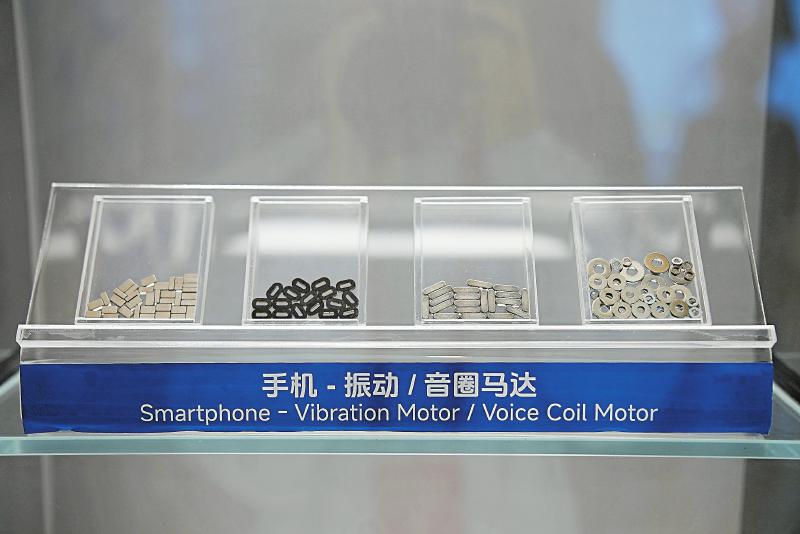 巨星永磁展厅内展示的不同类型的稀土永磁材料产品。