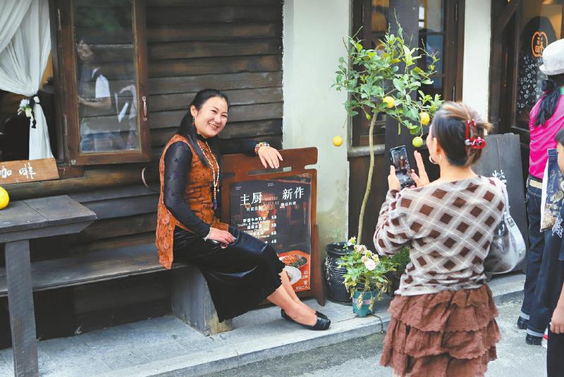 游客在广汉黑塔街拍照打卡。 广汉市委宣传部供图