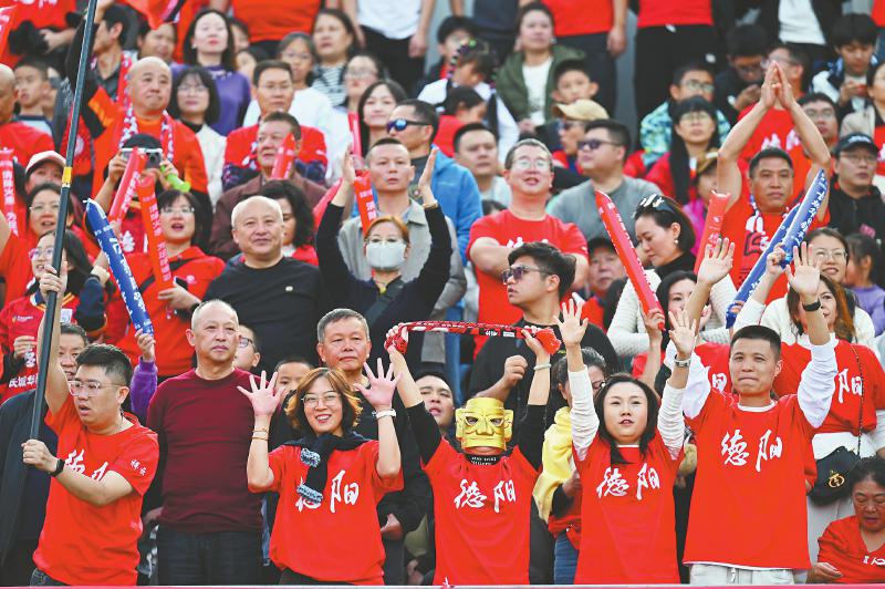 11月9日,自贡灯城燊龙队以2∶0战胜对手,球迷现场欢呼,庆祝球队提前锁定总决赛席位。