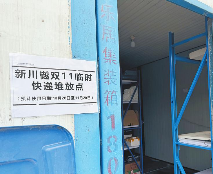新川樾小区设置的临时快递堆放点。