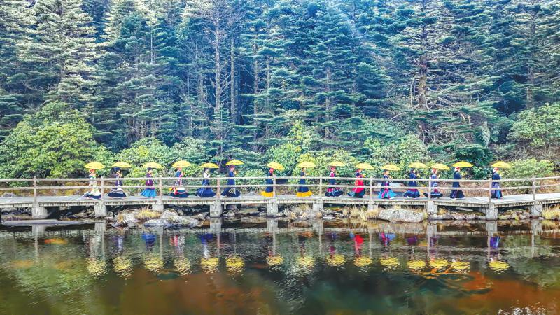 朵乐荷在螺髻山黑龙潭形成倒影。 王荣升 摄