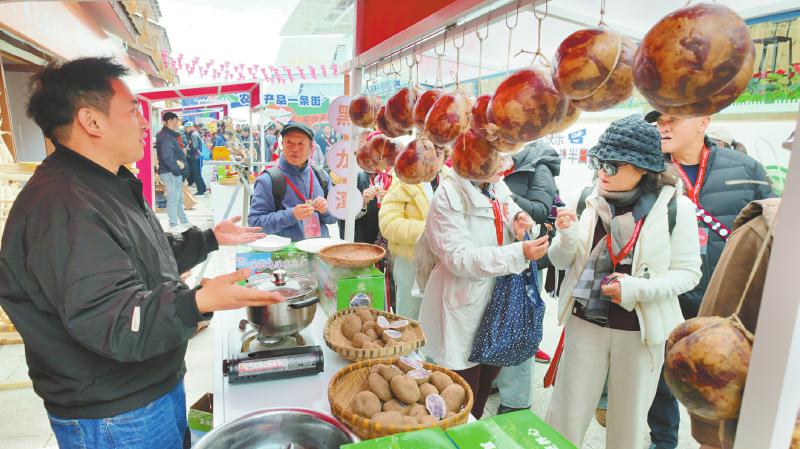 游客在螺髻山景区选购彝族传统美食包腊。 何流 摄