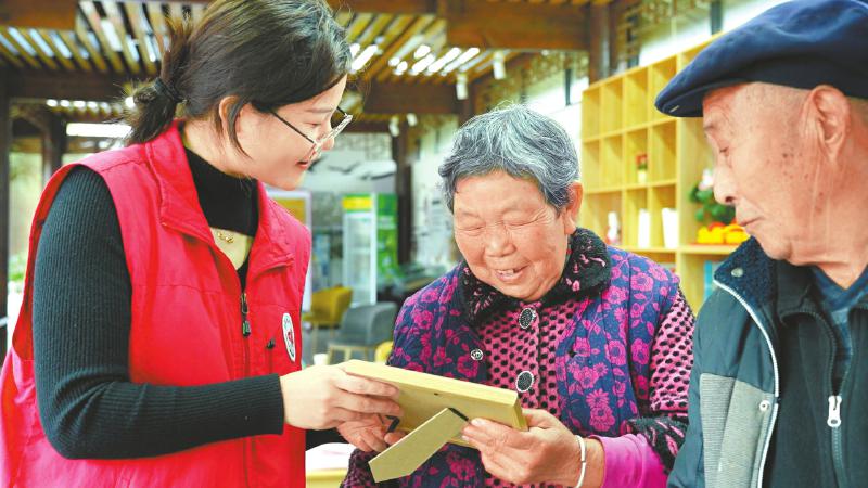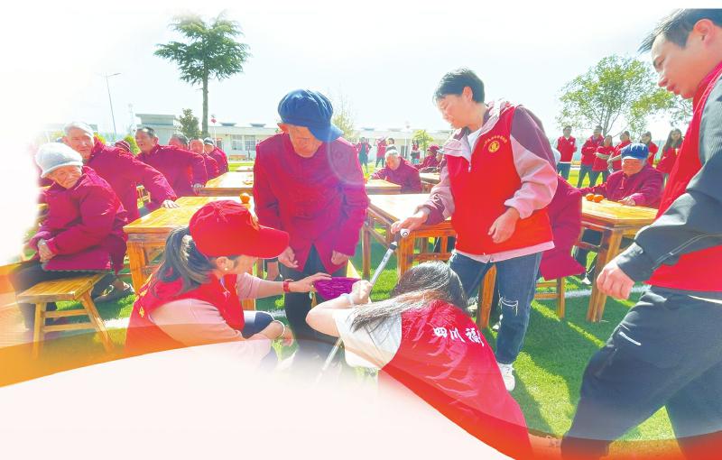 四川福彩志愿者为老人送上“重返18岁”AI照片。