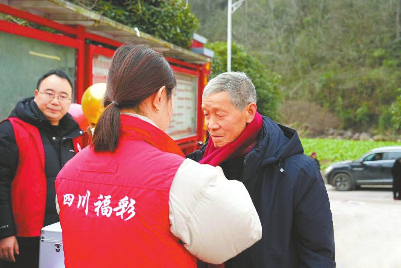 四川福彩志愿者到万源市黄钟镇、长坝镇慰问老党员。