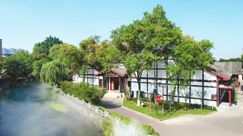 怀古亭里,盆景和盖碗茶,透着浓浓的四川味道。 四川日报全媒体记者 赵明 摄