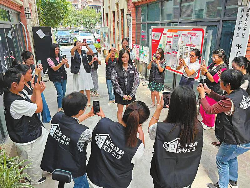 枣子巷技能夜校短视频培训课在街头实训。 成都市金牛区人社局供图