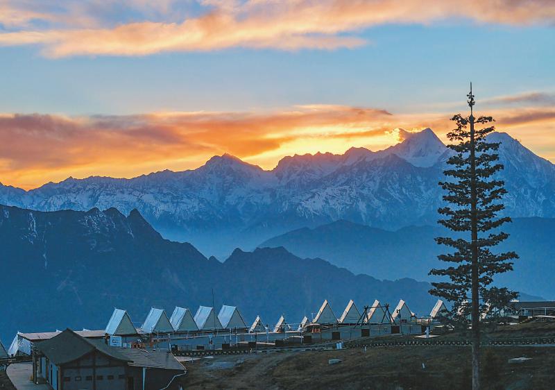 1月16日,位于荥经县与泸定县交界处的牛背山上,雪山风光如画,吸引各地游客前来赏雪。